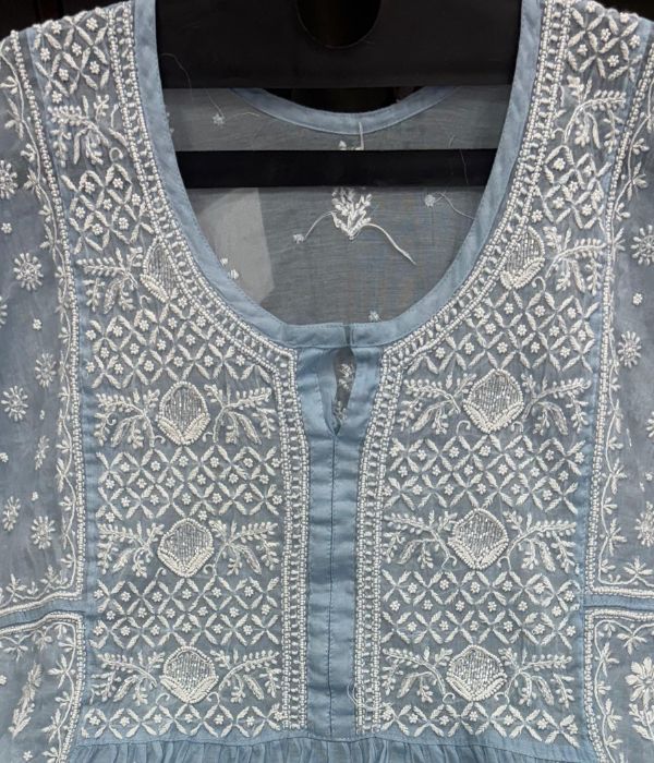 Work: Full front Jaal design in fine Chikankari with Pearl & Cuddana embellishments, all done by hand