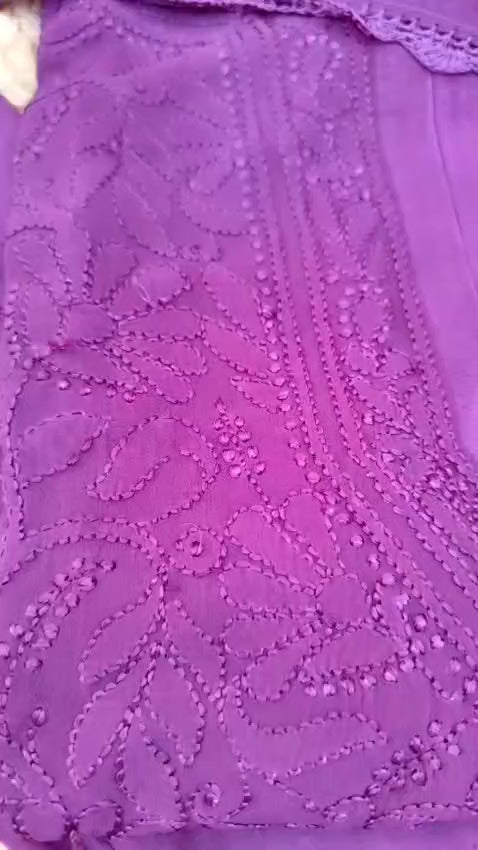 - Work: Full front Jaal design in fine shadow Resham (thread) Chikankari, all done by hand